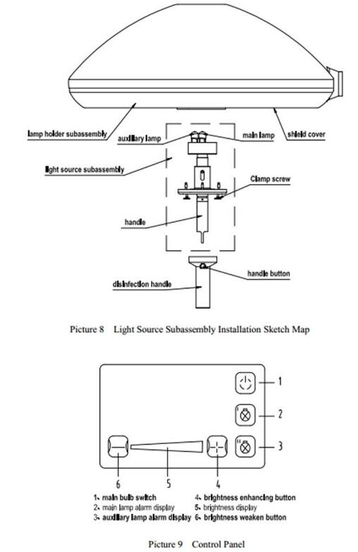 4. With the function of backup bulb's automatic switch, when the main light is burning out, the auxiliary light will light automatically in 3 seconds. There are main light and auxiliary light failure instructions on teh handle panel, to remind to change in time after surgery.